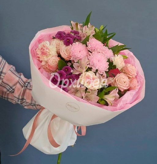 Каждая изготавливаемая флористом цветочная композиция является уникальной и может отличаться внешним видом, размером и оттенками цвета. Также возможны замены по ассортименту и составу цветов в зависимости от сезонности, наличия цветов и т.п. факторов. Итоговое исполнение заказа может незначительно отличаться от иллюстрации на сайте. При этом каждая цветочная композиция составляется из свежих цветов, и флористы предпринимают все усилия для того, чтобы цвет, форма цветочной работы как можно полнее соответствовали иллюстрации на сайте.