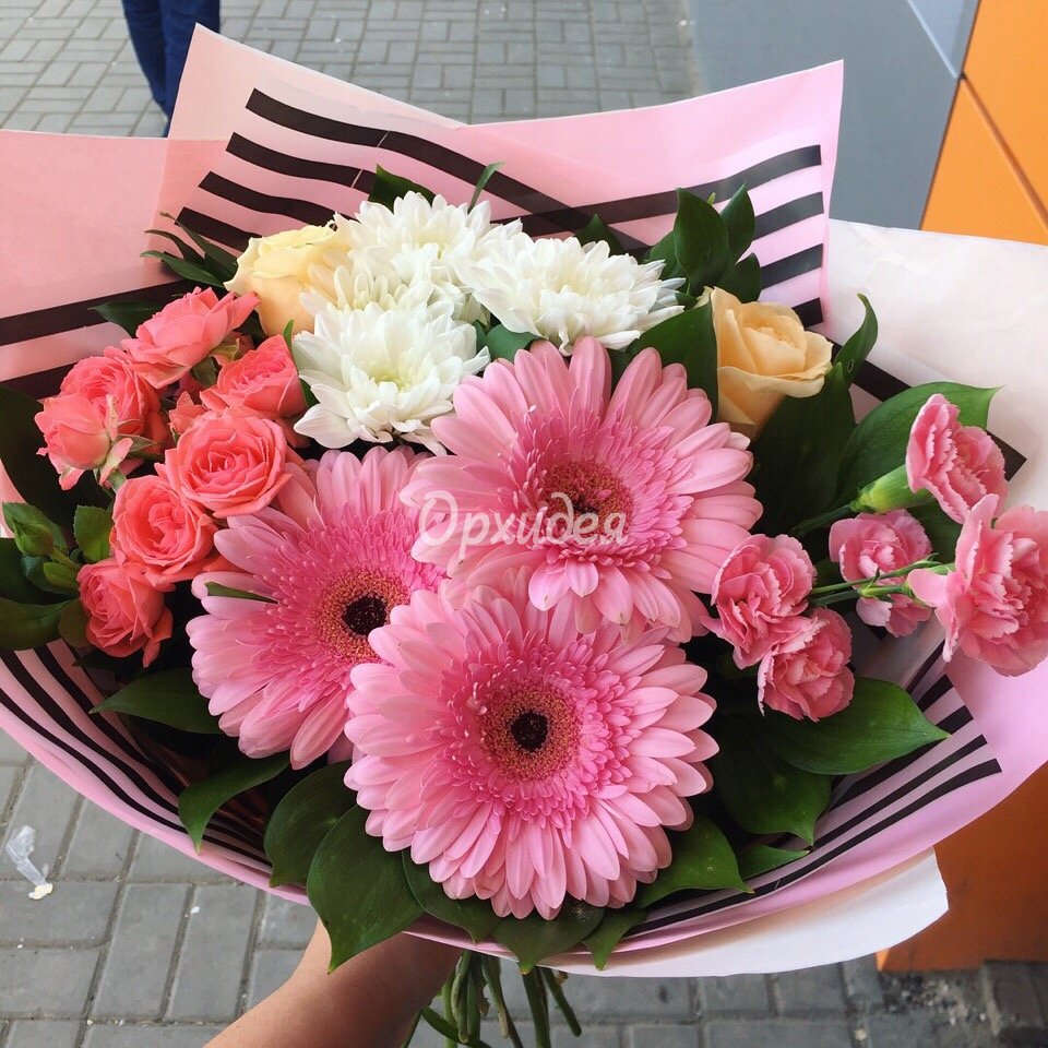 Каждая изготавливаемая флористом цветочная композиция является уникальной и может отличаться внешним видом, размером и оттенками цвета. Также возможны замены по ассортименту и составу цветов в зависимости от сезонности, наличия цветов и т.п. факторов. Итоговое исполнение заказа может незначительно отличаться от иллюстрации на сайте. При этом каждая цветочная композиция составляется из свежих цветов, и флористы предпринимают все усилия для того, чтобы цвет, форма цветочной работы как можно полнее соответствовали иллюстрации на сайте.