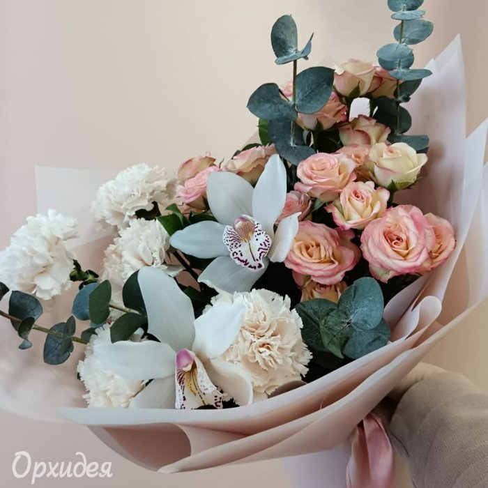 Каждая изготавливаемая флористом цветочная композиция является уникальной и может отличаться внешним видом, размером и оттенками цвета. Также возможны замены по ассортименту и составу цветов в зависимости от сезонности, наличия цветов и т.п. факторов. Итоговое исполнение заказа может незначительно отличаться от иллюстрации на сайте. При этом каждая цветочная композиция составляется из свежих цветов, и флористы предпринимают все усилия для того, чтобы цвет, форма цветочной работы как можно полнее соответствовали иллюстрации на сайте.