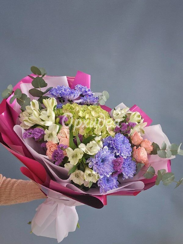 Каждая изготавливаемая флористом цветочная композиция является уникальной и может отличаться внешним видом, размером и оттенками цвета. Также возможны замены по ассортименту и составу цветов в зависимости от сезонности, наличия цветов и т.п. факторов. Итоговое исполнение заказа может незначительно отличаться от иллюстрации на сайте. При этом каждая цветочная композиция составляется из свежих цветов, и флористы предпринимают все усилия для того, чтобы цвет, форма цветочной работы как можно полнее соответствовали иллюстрации на сайте.