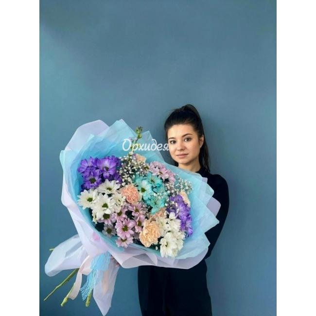 Каждая изготавливаемая флористом цветочная композиция является уникальной и может отличаться внешним видом, размером и оттенками цвета. Также возможны замены по ассортименту и составу цветов в зависимости от сезонности, наличия цветов и т.п. факторов. Итоговое исполнение заказа может незначительно отличаться от иллюстрации на сайте. При этом каждая цветочная композиция составляется из свежих цветов, и флористы предпринимают все усилия для того, чтобы цвет, форма цветочной работы как можно полнее соответствовали иллюстрации на сайте.