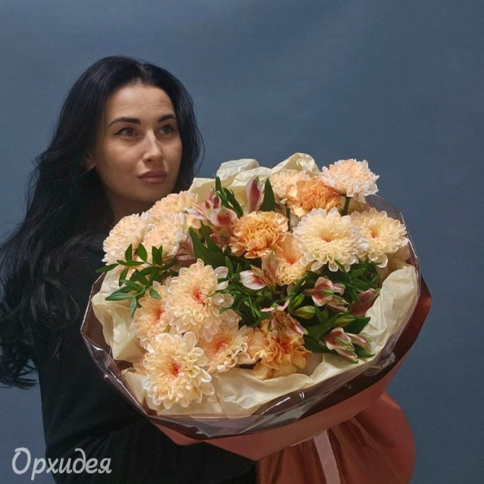 Каждая изготавливаемая флористом цветочная композиция является уникальной и может отличаться внешним видом, размером и оттенками цвета. Также возможны замены по ассортименту и составу цветов в зависимости от сезонности, наличия цветов и т.п. факторов. Итоговое исполнение заказа может незначительно отличаться от иллюстрации на сайте. При этом каждая цветочная композиция составляется из свежих цветов, и флористы предпринимают все усилия для того, чтобы цвет, форма цветочной работы как можно полнее соответствовали иллюстрации на сайте.