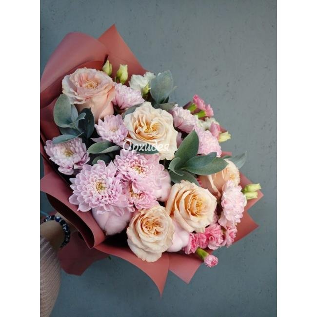 Каждая изготавливаемая флористом цветочная композиция является уникальной и может отличаться внешним видом, размером и оттенками цвета. Также возможны замены по ассортименту и составу цветов в зависимости от сезонности, наличия цветов и т.п. факторов. Итоговое исполнение заказа может незначительно отличаться от иллюстрации на сайте. При этом каждая цветочная композиция составляется из свежих цветов, и флористы предпринимают все усилия для того, чтобы цвет, форма цветочной работы как можно полнее соответствовали иллюстрации на сайте.