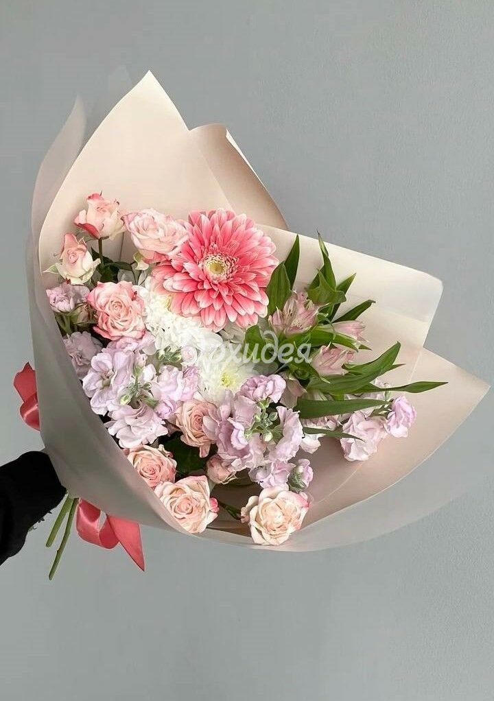 Каждая изготавливаемая флористом цветочная композиция является уникальной и может отличаться внешним видом, размером и оттенками цвета. Также возможны замены по ассортименту и составу цветов в зависимости от сезонности, наличия цветов и т.п. факторов. Итоговое исполнение заказа может незначительно отличаться от иллюстрации на сайте. При этом каждая цветочная композиция составляется из свежих цветов, и флористы предпринимают все усилия для того, чтобы цвет, форма цветочной работы как можно полнее соответствовали иллюстрации на сайте.