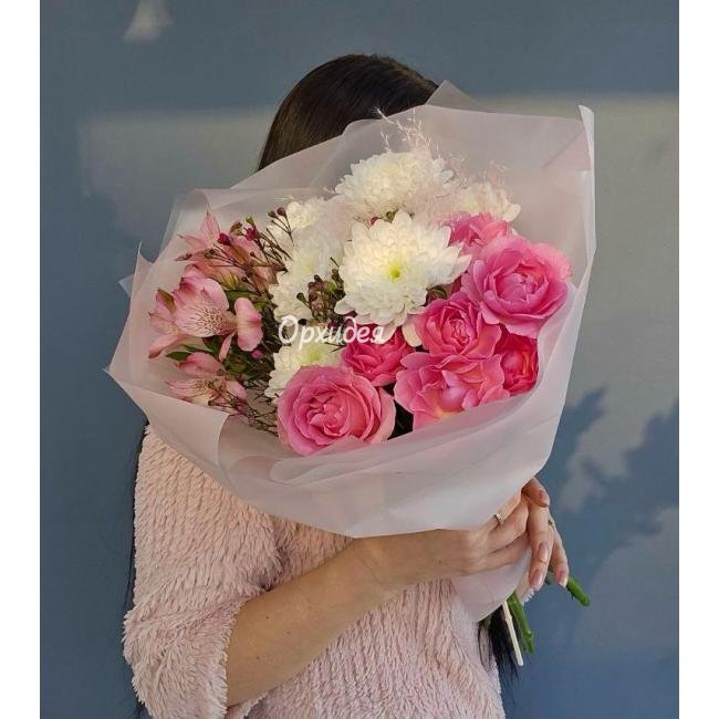 Каждая изготавливаемая флористом цветочная композиция является уникальной и может отличаться внешним видом, размером и оттенками цвета. Также возможны замены по ассортименту и составу цветов в зависимости от сезонности, наличия цветов и т.п. факторов. Итоговое исполнение заказа может незначительно отличаться от иллюстрации на сайте. При этом каждая цветочная композиция составляется из свежих цветов, и флористы предпринимают все усилия для того, чтобы цвет, форма цветочной работы как можно полнее соответствовали иллюстрации на сайте.