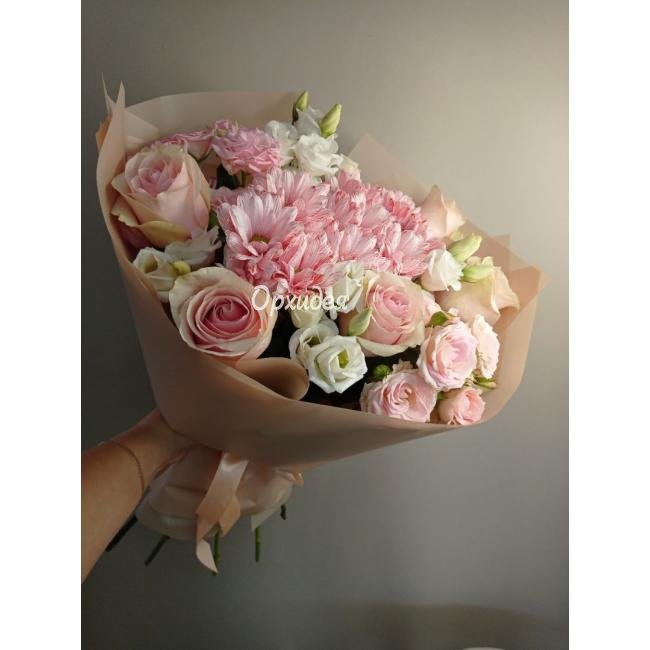 Каждая изготавливаемая флористом цветочная композиция является уникальной и может отличаться внешним видом, размером и оттенками цвета. Также возможны замены по ассортименту и составу цветов в зависимости от сезонности, наличия цветов и т.п. факторов. Итоговое исполнение заказа может незначительно отличаться от иллюстрации на сайте. При этом каждая цветочная композиция составляется из свежих цветов, и флористы предпринимают все усилия для того, чтобы цвет, форма цветочной работы как можно полнее соответствовали иллюстрации на сайте.