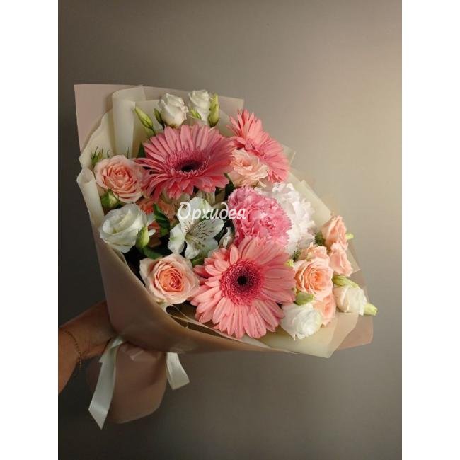 Каждая изготавливаемая флористом цветочная композиция является уникальной и может отличаться внешним видом, размером и оттенками цвета. Также возможны замены по ассортименту и составу цветов в зависимости от сезонности, наличия цветов и т.п. факторов. Итоговое исполнение заказа может незначительно отличаться от иллюстрации на сайте. При этом каждая цветочная композиция составляется из свежих цветов, и флористы предпринимают все усилия для того, чтобы цвет, форма цветочной работы как можно полнее соответствовали иллюстрации на сайте.