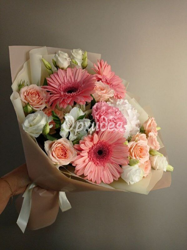 Каждая изготавливаемая флористом цветочная композиция является уникальной и может отличаться внешним видом, размером и оттенками цвета. Также возможны замены по ассортименту и составу цветов в зависимости от сезонности, наличия цветов и т.п. факторов. Итоговое исполнение заказа может незначительно отличаться от иллюстрации на сайте. При этом каждая цветочная композиция составляется из свежих цветов, и флористы предпринимают все усилия для того, чтобы цвет, форма цветочной работы как можно полнее соответствовали иллюстрации на сайте.