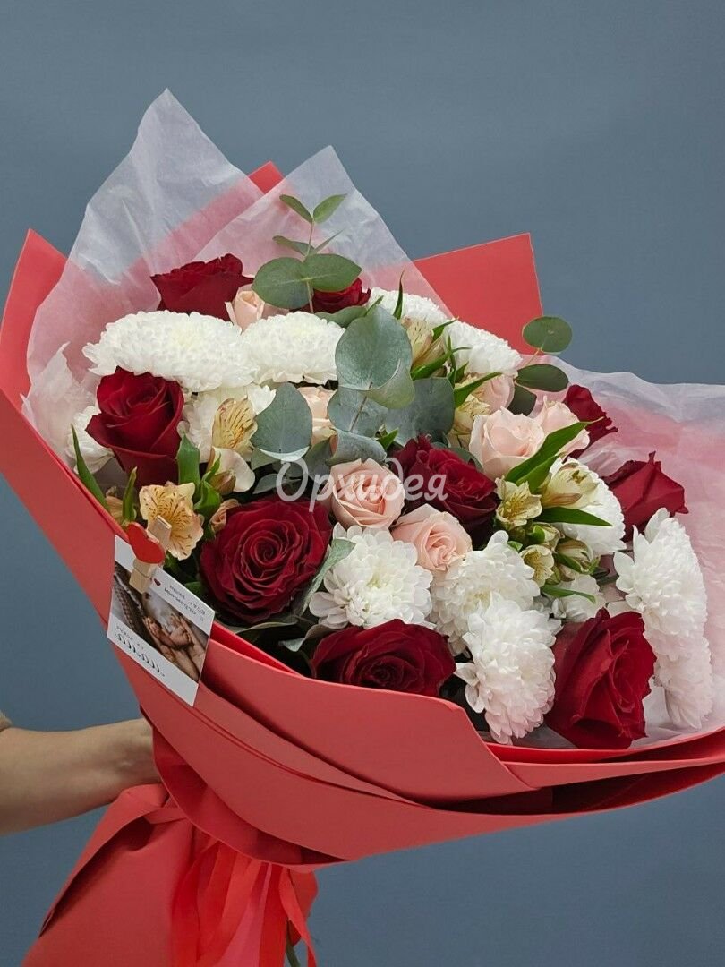 Каждая изготавливаемая флористом цветочная композиция является уникальной и может отличаться внешним видом, размером и оттенками цвета. Также возможны замены по ассортименту и составу цветов в зависимости от сезонности, наличия цветов и т.п. факторов. Итоговое исполнение заказа может незначительно отличаться от иллюстрации на сайте. При этом каждая цветочная композиция составляется из свежих цветов, и флористы предпринимают все усилия для того, чтобы цвет, форма цветочной работы как можно полнее соответствовали иллюстрации на сайте.
