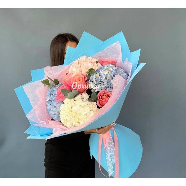 Каждая изготавливаемая флористом цветочная композиция является уникальной и может отличаться внешним видом, размером и оттенками цвета. Также возможны замены по ассортименту и составу цветов в зависимости от сезонности, наличия цветов и т.п. факторов. Итоговое исполнение заказа может незначительно отличаться от иллюстрации на сайте. При этом каждая цветочная композиция составляется из свежих цветов, и флористы предпринимают все усилия для того, чтобы цвет, форма цветочной работы как можно полнее соответствовали иллюстрации на сайте.