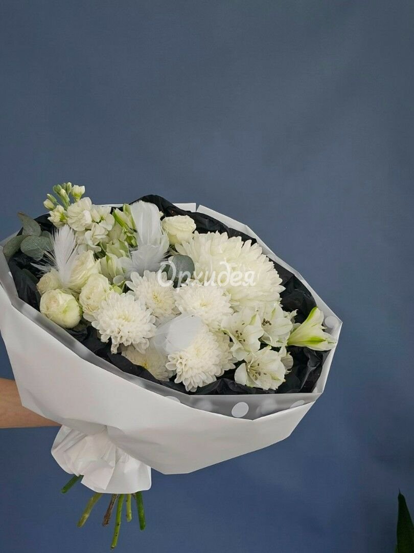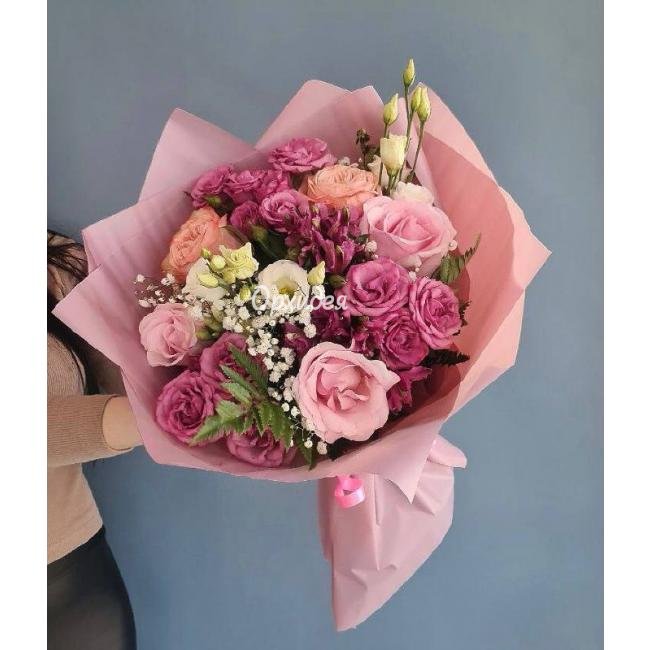 Каждая изготавливаемая флористом цветочная композиция является уникальной и может отличаться внешним видом, размером и оттенками цвета. Также возможны замены по ассортименту и составу цветов в зависимости от сезонности, наличия цветов и т.п. факторов. Итоговое исполнение заказа может незначительно отличаться от иллюстрации на сайте. При этом каждая цветочная композиция составляется из свежих цветов, и флористы предпринимают все усилия для того, чтобы цвет, форма цветочной работы как можно полнее соответствовали иллюстрации на сайте.