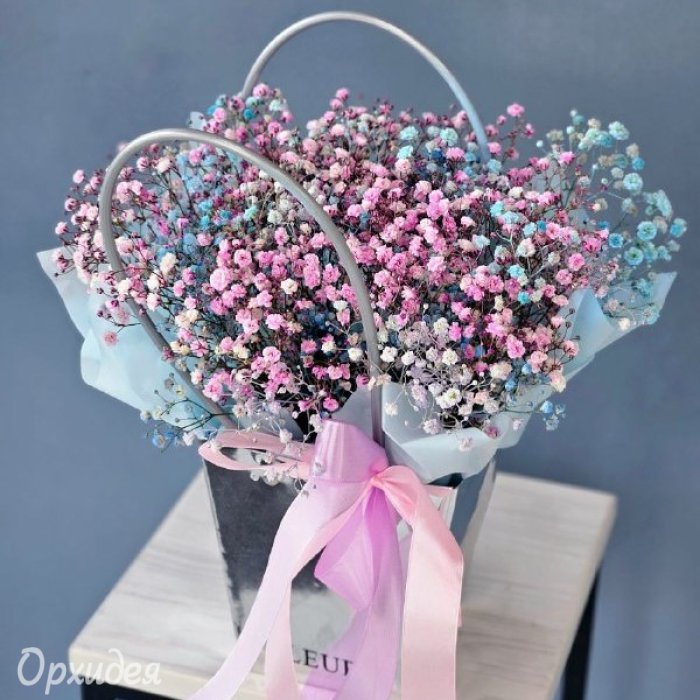 Каждая изготавливаемая флористом цветочная композиция является уникальной и может отличаться внешним видом, размером и оттенками цвета. Также возможны замены по ассортименту и составу цветов в зависимости от сезонности, наличия цветов и т.п. факторов. Итоговое исполнение заказа может незначительно отличаться от иллюстрации на сайте. При этом каждая цветочная композиция составляется из свежих цветов, и флористы предпринимают все усилия для того, чтобы цвет, форма цветочной работы как можно полнее соответствовали иллюстрации на сайте.