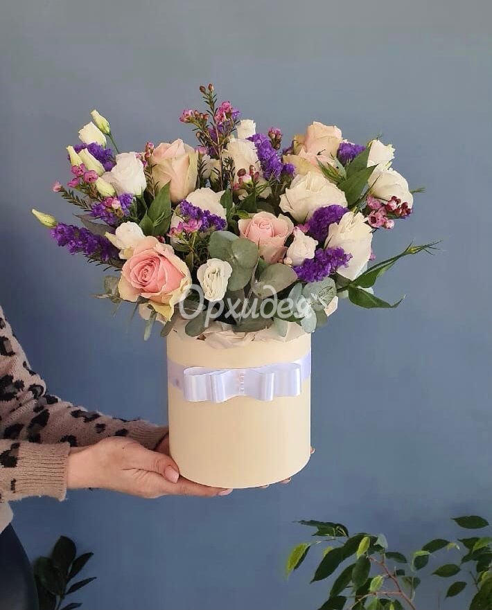 Каждая изготавливаемая флористом цветочная композиция является уникальной и может отличаться внешним видом, размером и оттенками цвета. Также возможны замены по ассортименту и составу цветов в зависимости от сезонности, наличия цветов и т.п. факторов. Итоговое исполнение заказа может незначительно отличаться от иллюстрации на сайте. При этом каждая цветочная композиция составляется из свежих цветов, и флористы предпринимают все усилия для того, чтобы цвет, форма цветочной работы как можно полнее соответствовали иллюстрации на сайте.