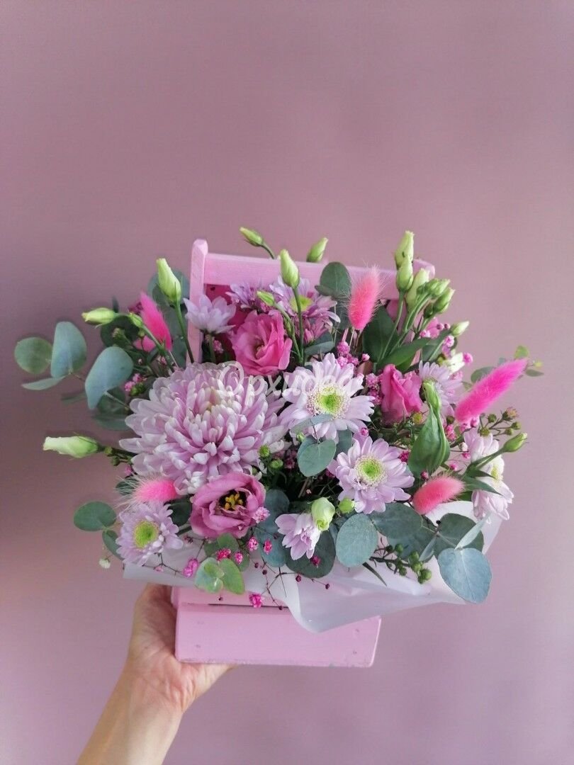 Каждая изготавливаемая флористом цветочная композиция является уникальной и может отличаться внешним видом, размером и оттенками цвета. Также возможны замены по ассортименту и составу цветов в зависимости от сезонности, наличия цветов и т.п. факторов. Итоговое исполнение заказа может незначительно отличаться от иллюстрации на сайте. При этом каждая цветочная композиция составляется из свежих цветов, и флористы предпринимают все усилия для того, чтобы цвет, форма цветочной работы как можно полнее соответствовали иллюстрации на сайте.
