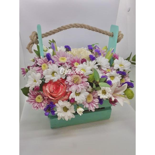 Описание Нежный презент в ярком ящичке.
