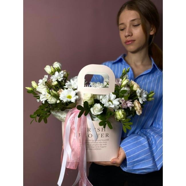 Каждая изготавливаемая флористом цветочная композиция является уникальной и может отличаться внешним видом, размером и оттенками цвета. Также возможны замены по ассортименту и составу цветов в зависимости от сезонности, наличия цветов и т.п. факторов. Итоговое исполнение заказа может незначительно отличаться от иллюстрации на сайте. При этом каждая цветочная композиция составляется из свежих цветов, и флористы предпринимают все усилия для того, чтобы цвет, форма цветочной работы как можно полнее соответствовали иллюстрации на сайте.