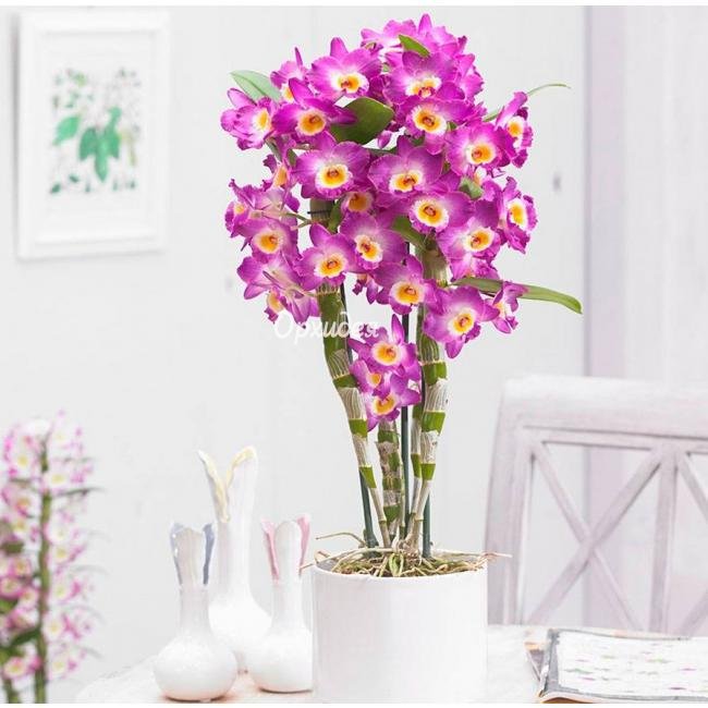 Описание Орхидея дендробиум в ассортименте. В зависимости от размера стоимость горшечного цветка может меняться. В стоимость не входит декоративный горшок.