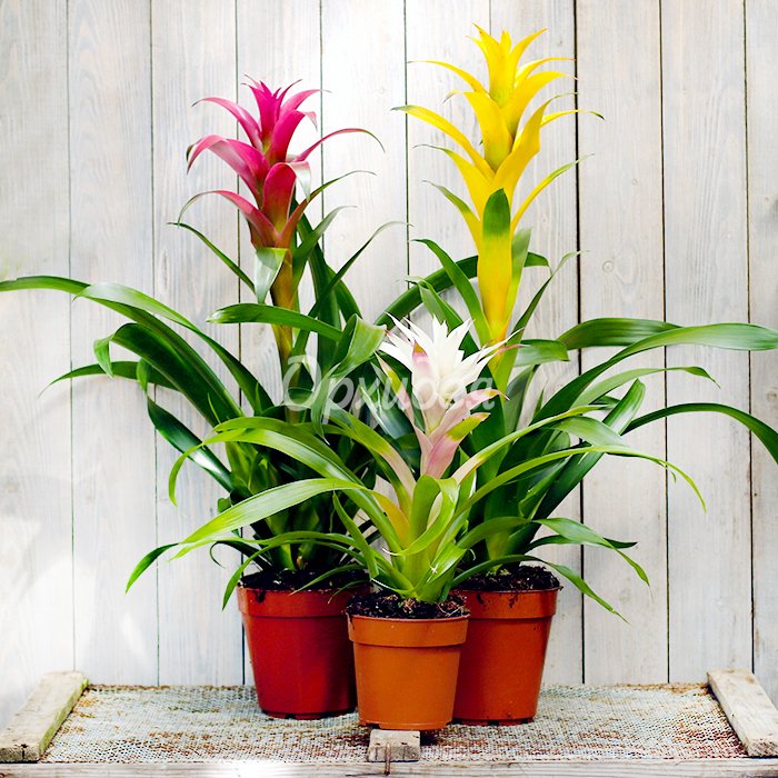Описание Гузмания в ассортименте. В зависимости от размера стоимость горшечного цветка может меняться. В стоимость не входит декоративный горшок.