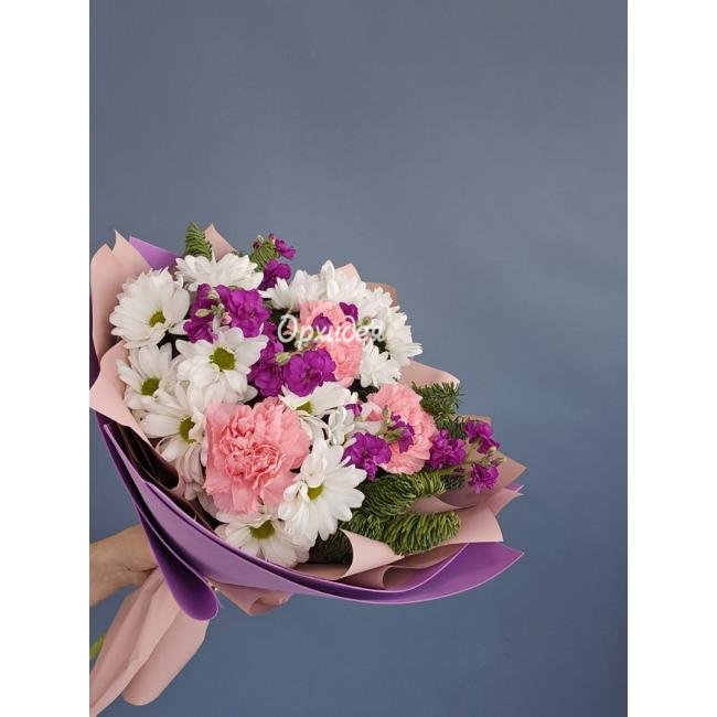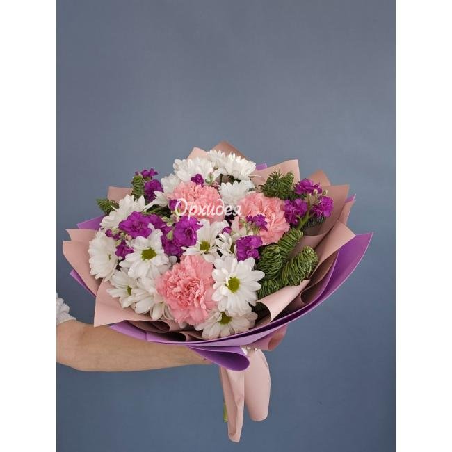 Каждая изготавливаемая флористом цветочная композиция является уникальной и может отличаться внешним видом, размером и оттенками цвета. Также возможны замены по ассортименту и составу цветов в зависимости от сезонности, наличия цветов и т.п. факторов. Итоговое исполнение заказа может незначительно отличаться от иллюстрации на сайте. При этом каждая цветочная композиция составляется из свежих цветов, и флористы предпринимают все усилия для того, чтобы цвет, форма цветочной работы как можно полнее соответствовали иллюстрации на сайте.