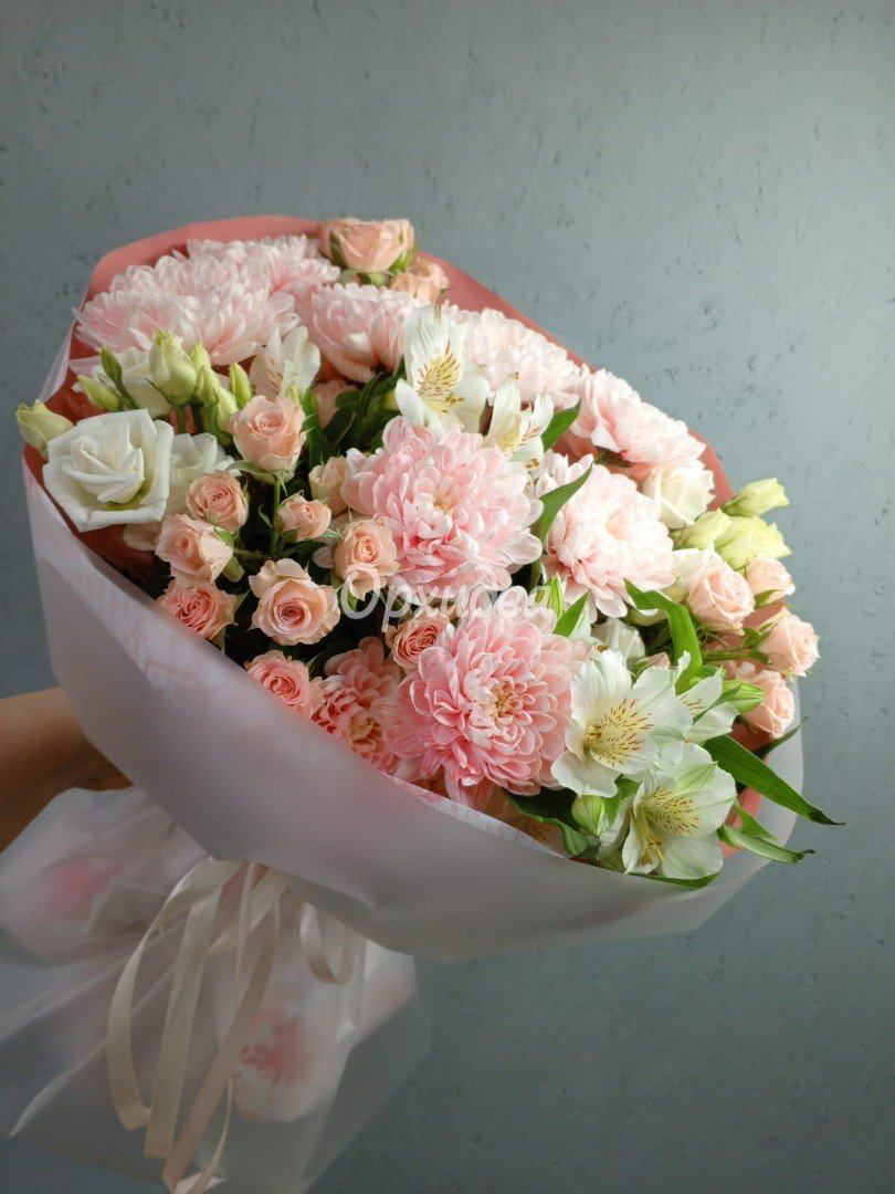 Каждая изготавливаемая флористом цветочная композиция является уникальной и может отличаться внешним видом, размером и оттенками цвета. Также возможны замены по ассортименту и составу цветов в зависимости от сезонности, наличия цветов и т.п. факторов. Итоговое исполнение заказа может незначительно отличаться от иллюстрации на сайте. При этом каждая цветочная композиция составляется из свежих цветов, и флористы предпринимают все усилия для того, чтобы цвет, форма цветочной работы как можно полнее соответствовали иллюстрации на сайте.