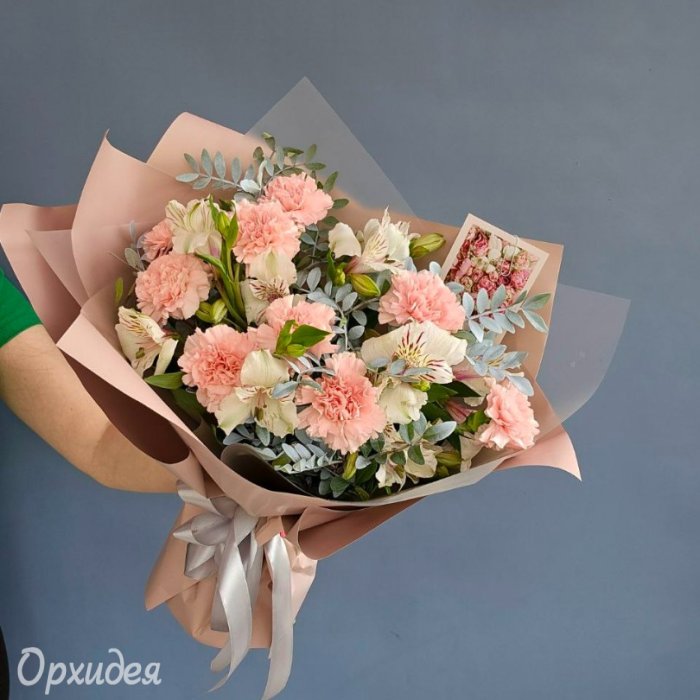 Каждая изготавливаемая флористом цветочная композиция является уникальной и может отличаться внешним видом, размером и оттенками цвета. Также возможны замены по ассортименту и составу цветов в зависимости от сезонности, наличия цветов и т.п. факторов. Итоговое исполнение заказа может незначительно отличаться от иллюстрации на сайте. При этом каждая цветочная композиция составляется из свежих цветов, и флористы предпринимают все усилия для того, чтобы цвет, форма цветочной работы как можно полнее соответствовали иллюстрации на сайте.