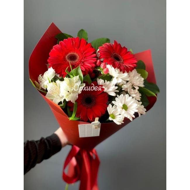 Каждая изготавливаемая флористом цветочная композиция является уникальной и может отличаться внешним видом, размером и оттенками цвета. Также возможны замены по ассортименту и составу цветов в зависимости от сезонности, наличия цветов и т.п. факторов. Итоговое исполнение заказа может незначительно отличаться от иллюстрации на сайте. При этом каждая цветочная композиция составляется из свежих цветов, и флористы предпринимают все усилия для того, чтобы цвет, форма цветочной работы как можно полнее соответствовали иллюстрации на сайте.